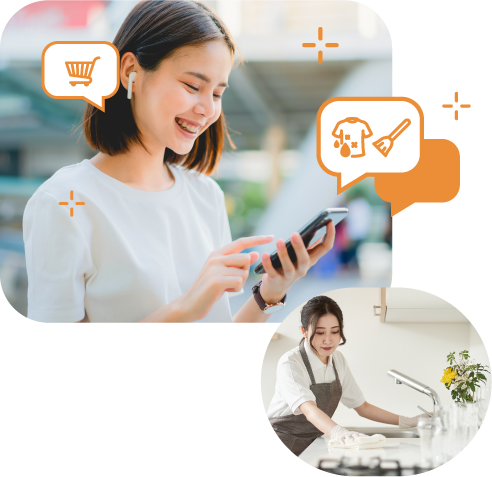 買い物、掃除、料理など、お客様の個々のニーズに合わせてサービスをカスタマイズ。一人ひとりのライフスタイルやご要望に合致するよう、プロの女性シッターが細やかなサポートを提供します。