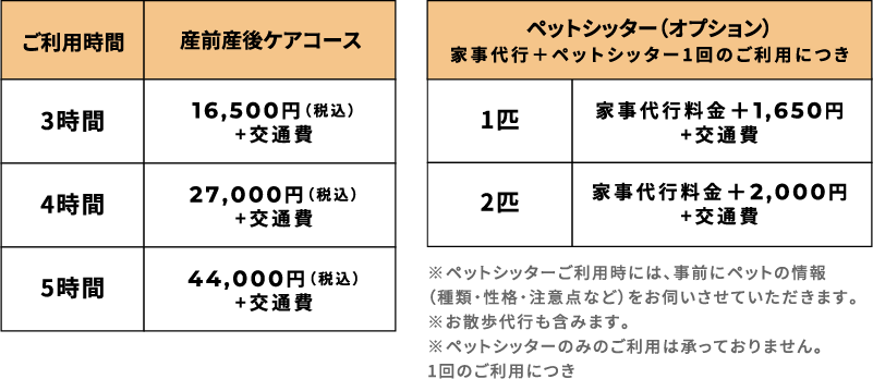 ※ペットシッターのみのご利用は承っておりません。